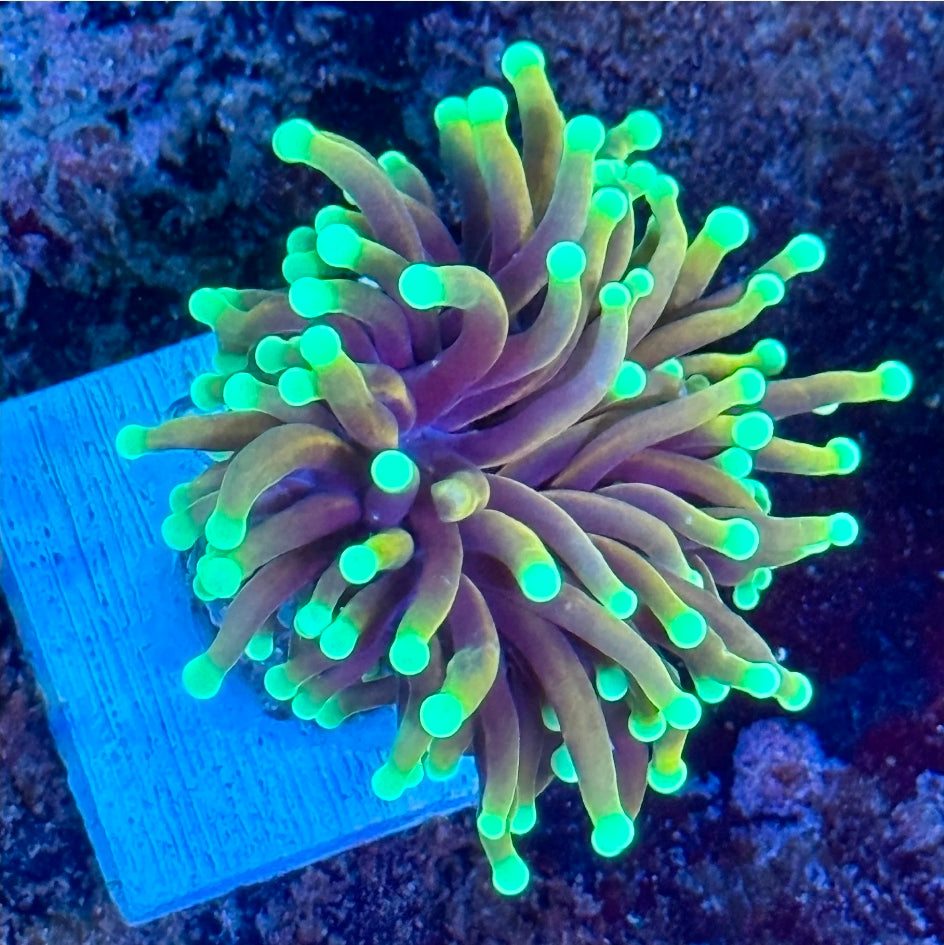 The Dragon Soul Torch is pure fire for your reef. With its deep purple body, golden tentacles, and vibrant neon green tips, this torch lives up to its legendary name. Each polyp dances with energy under reef lighting, adding dramatic color and movement that instantly draws attention. A true centerpiece coral that blends power and elegance — perfect for collectors and hobbyists looking to elevate their display.