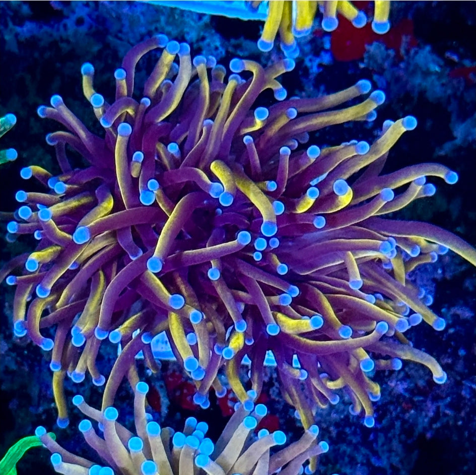 Bring championship-level color to your reef with the NY Knicks Torch — a bold and vibrant showpiece inspired by the iconic team colors. This torch displays deep blue-purple tentacles accented with blazing orange and golden tips, creating an electric contrast that commands attention under reef lighting. Its signature flow and color combination make it a must-have for collectors looking to add energy and movement to their tank.